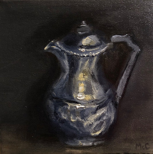 Silver Coffee Pot Still Life | Original Oil Painting | 6 x 6 inches with optional frame